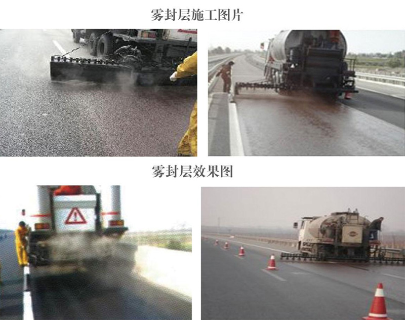 如何對以上的這些缺陷進行處理,方法很多,如微表處、薄罩面等,都各有優(yōu)缺點,但總結(jié)起來,在這一階段,更有效的方法是"霧封層技術(shù)”即"FOG SEAL" , 且它的費用非常的低廉。經(jīng)霧封層后,由于所用材料流動性比較大,可滲入到骨料縫中去,可流入到裂縫中去,對路面“輸血”,從而恢復(fù)路表瀝青粘附力,填補微小裂縫和空隙,防止路表水下滲,將路面性能維持2~ 3年時間,推遲造價更高的養(yǎng)護工程,提高了道路的經(jīng)濟效益。
